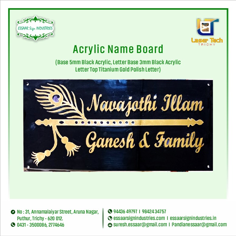 Acrylic Name Board with Titanium Gold Letters