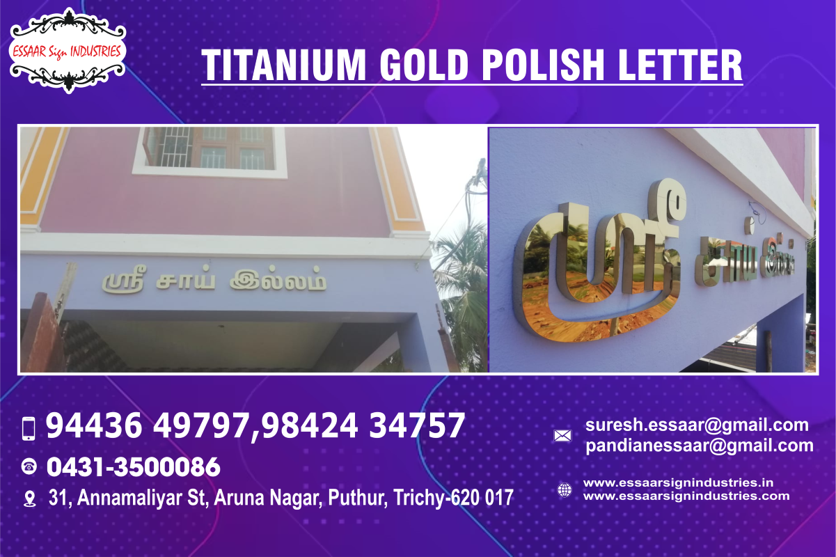 Titanium Gold Polish Letter ๐ All Customized designs available๐ฏ for more details Contact us : 9443649797, 9842434757 Don't forget to Follow our Official Instagram & Facebook Pages๐ https://www.facebook.com/trichyessaarsignindustries https://www.instagram.com/essaar_sign_industries #signage #signagedesign #signagemaker #signagecompany #essaarsignindustries #lasertechtrichy #lasercuttingtrichy #trichytrends
